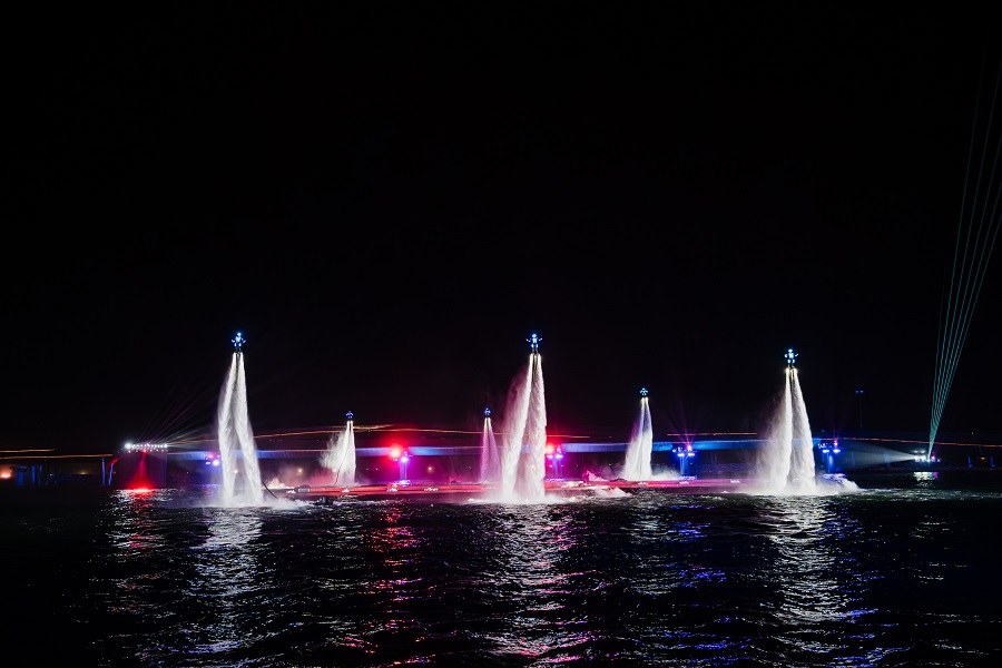 At the Sunset Bay, 21 world-class athletes in jetski, jetsurf, and flyboard sports showcased top-tier techniques in upgraded LED performance costumes. In this year’s upgraded version, all costumes were designed by Bao Rong—a prestigious costume design unit that has collaborated on international events and with major names such as director Zhang Yimou.