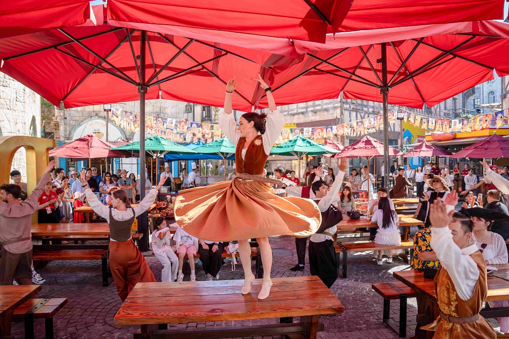 Sun World Ba Na Hills comes alive with a festive summer atmosphere, featuring dynamic art performances set against a European-inspired setting atop the mountain.