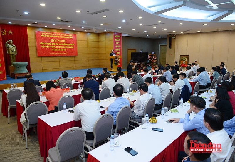 Comrade Nguyen Hoang Anh - Member of the Party Central Committee, Deputy Head of the Central Policy and Strategy Commission; Comrade Nguyen Van Thang, Member of the Party Central Committee, Member of the Government Party Committee, Party Secretary, Minister of Finance; Comrade Nguyen Phi Long - Alternate Member of the Party Central Committee, Deputy Secretary of the Party Committee of the Fatherland Front, Central mass organizations; Comrade Nguyen Thanh Binh - Deputy Head of the Central Organization Commission; Comrade Ho Sy Hung - Secretary of the Party Committee of the Vietnam Chamber of Commerce and Industry, Deputy Minister of Finance; Comrade Nguyen Quang Vinh, Standing Deputy Secretary of the Party Committee, Vice President of VCCI; Comrade Pham Tan Cong - President of VCCI; Comrade Hoang Quang Phong - Deputy Secretary of the Party Committee, Vice President of VCCI; Comrade Bui Trung Nghia - Member of the Standing Committee, Head of the Propaganda and Mass Mobilization Committee of the VCCI Party Committee, Vice President of VCCI... were present at the conference.