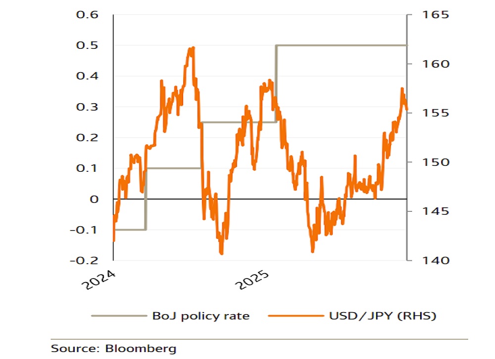 Now clearly those experiences do not guarantee a slump in the US dollar/yen on December 19th should the BoJ hike. For a start, the July 2024 rate hike was not fully anticipated and occurred after the BoJ had been intervening to strengthen the yen, while the January 2025 BoJ rate hike occurred at a time when the US dollar was pressurized by the incoming Trump administration. Fast forward to today and a 25 bps rate hike has an 80% probability according to overnight interest swap prices, and the US dollar is generally stable. So, even though we do think that a rate hike is likely, the impact on the US dollar/yen seems likely to be more muted than we have seen in the past.