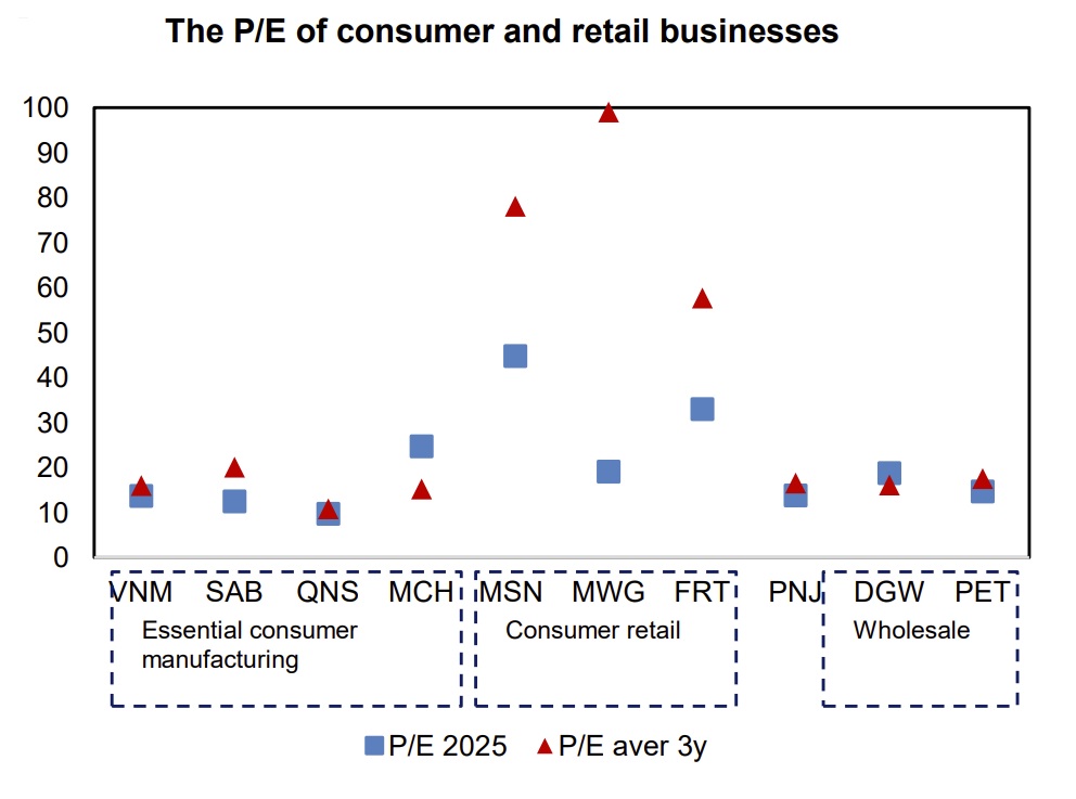 Therefore, MBS sees a high likelihood that informal street markets will be maximally phased out. As a result, the modern grocery/minimarket retail model, already widely spread in both rural and urban areas, will benefit significantly. In its assessment, large enterprises with professional supply chains and extensive coverage will be the biggest winners, and it particularly highlights MSN and MWG as key beneficiaries.