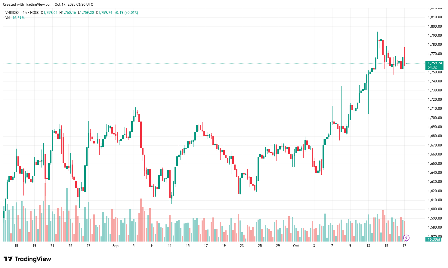 Yesterday, the VN-Index opened slightly higher above 1,760 and fluctuated around this level throughout the morning session. The blue chips were somewhat differentiated, affecting the momentum of the Vietnam stock market. Specifically, large-cap stocks in the Banking group (CTG, STB) and VHM adjusted, putting pressure on the index. On the contrary, purple stocks in MSN and GEE and green stocks in VJC and FPT helped the index balance.
