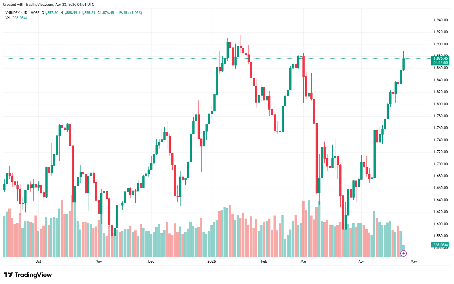 This morning, the VN-Index rose by 22 points to 1,880 points.
