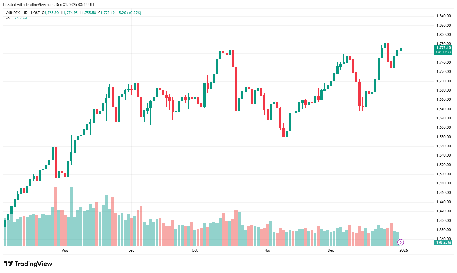 However, the decrease in market liquidity compared to the previous session, coupled with the closing gains mainly formed after the ATC session and the overall market breadth being balanced between the number of rising and falling stocks, indicates market divergence and a relatively quiet trading atmosphere amidst the approaching New Year's holiday.