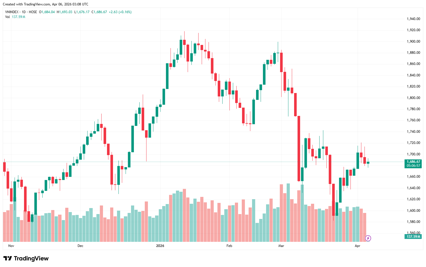 VCBS recommends that investors maintain their portfolio allocation in stocks that are trending sideways and holding firm at support levels. Additionally, they can take advantage of market fluctuations to invest in stocks with promising Q1 earnings prospects in sectors such as retail and banking.