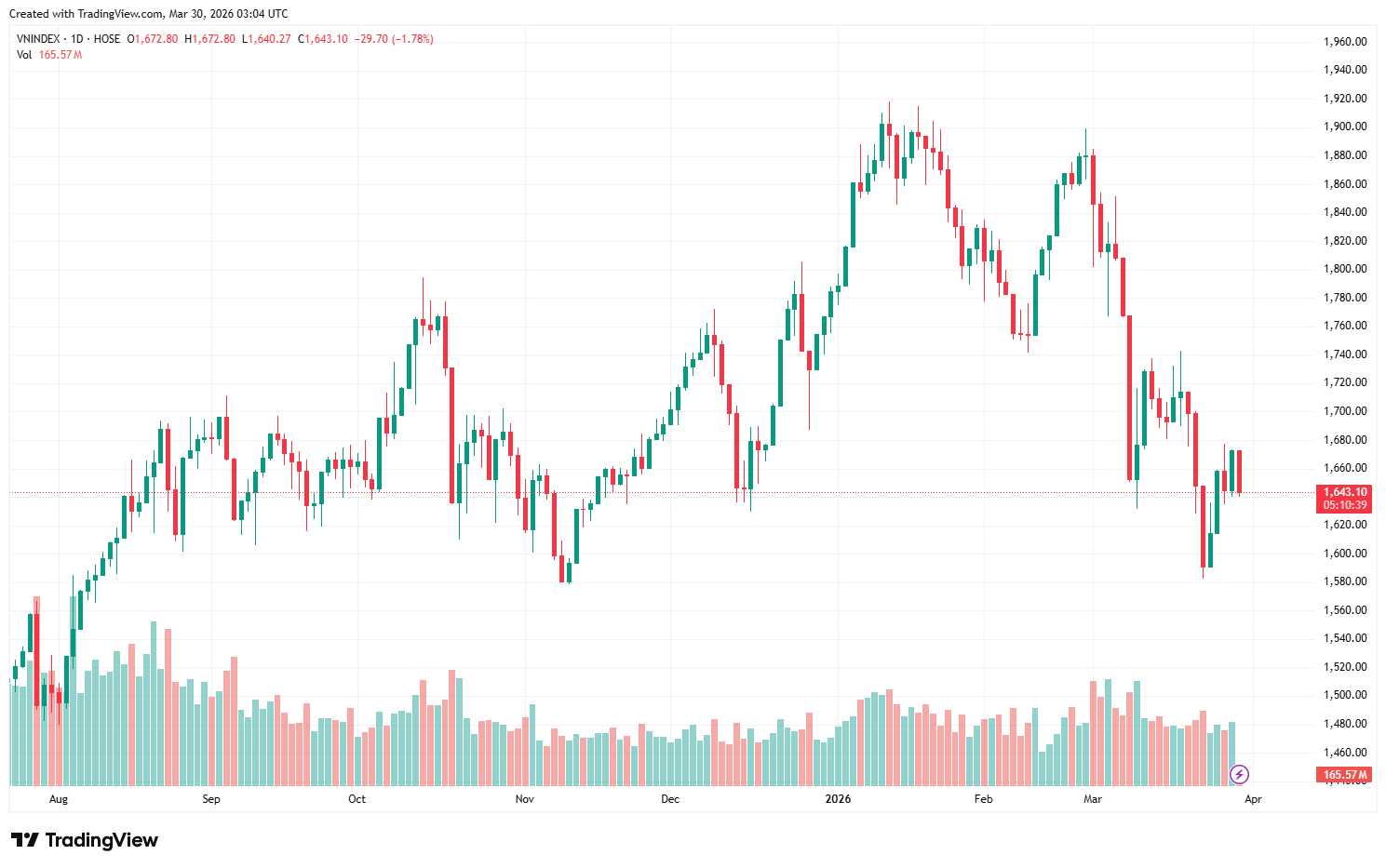 Last week, the Vietnam stock market witnessed an impressive recovery effort after successfully testing the 1,585-point support zone. Although the new week started in the red under negative pressure from fluctuations in world oil prices, leading to a sell-off that caused the VN-Index to lose the important psychological support level of the MA200 (corresponding to the 1,650-point zone), the subsequent developments showed a positive shift.