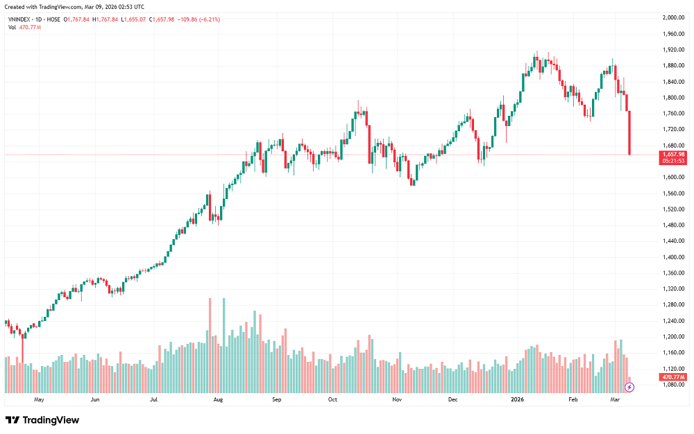 Given the escalating global geopolitical instability, VCBS recommends that investors review and restructure their portfolios by taking profits on stocks that have reached their targets to protect gains, while continuing to closely monitor market developments and only making new investments when the market shows signs of rebalancing or forming a clear bottom and trend reversal.