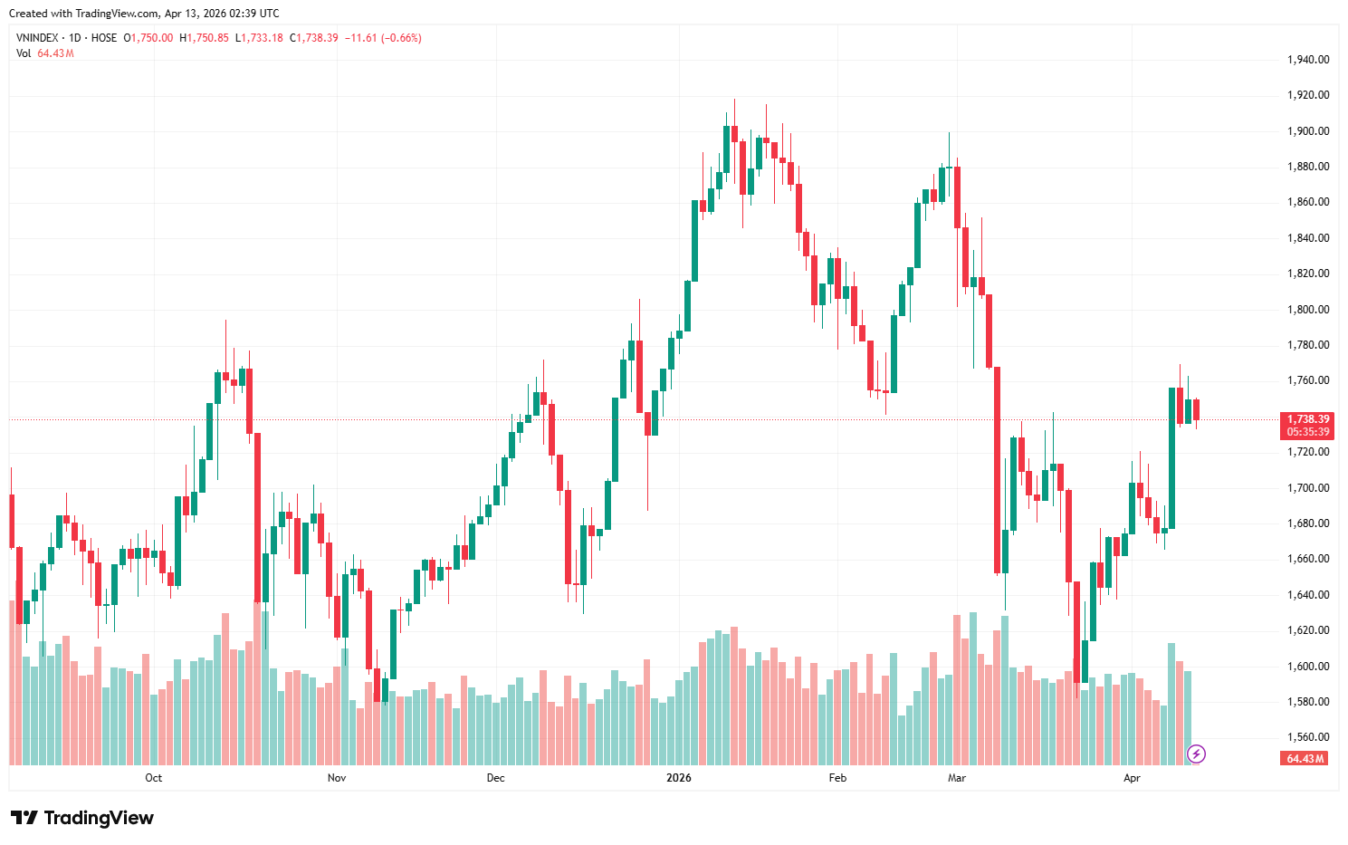 At the close of trading, the VN-Index settled at 1,750 points, up 13.32 points, or 0.77%. For the week, the VN-Index increased by 65.96 points (3.92%) compared to the previous week.