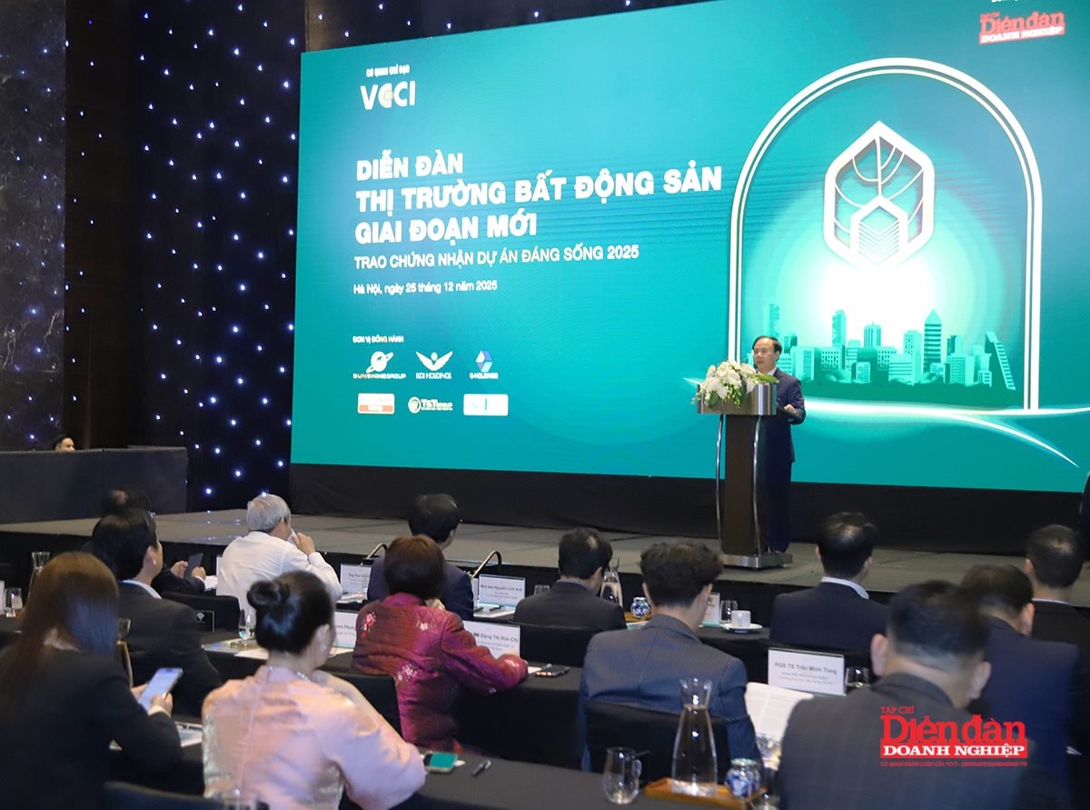 This was shared by Assoc. Prof. Dr. Ho Sy Hung—President of the Vietnam Chamber of Commerce and Industry (VCCI)—at the Forum: “The Real Estate Market in the New Phase—Awarding Certificates for Livable Projects 2025.”