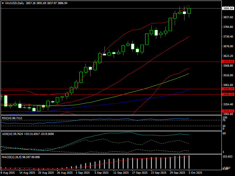 The US government has been partially shut down since October 1st because the two parties in the US Congress cannot agree on a federal budget bill, which has caused the gold prices to surge this week. Gold has also become more appealing due to rising prospects for Fed rate cuts. Particularly, there are no indications that the geopolitical disputes in the Middle East and Eastern Europe will stop. Furthermore, several central banks still buy gold aggressively to boost their national foreign exchange reserves, even if the price of the metal has hit all-time highs.