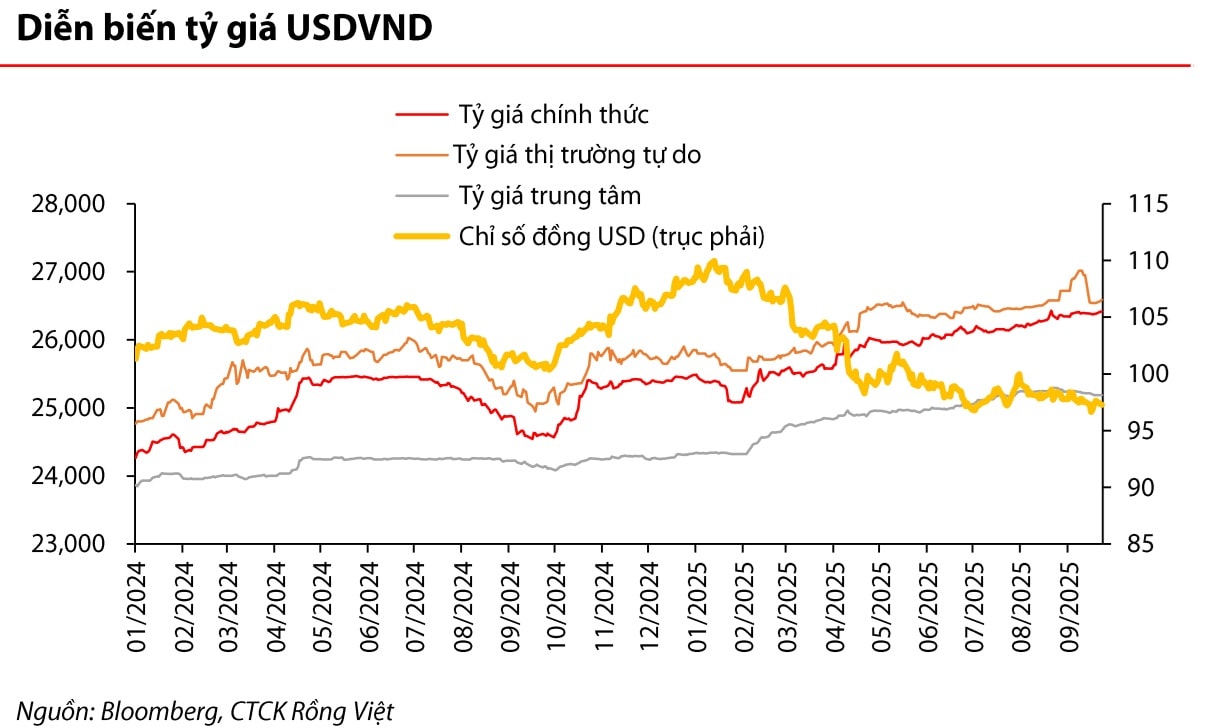 Previously, on August 25–26, SBV had intervened in the market with forward, non-cancellable USD purchase agreements totaling around USD 1.5 billion with commercial banks. MBS Securities viewed this as a flexible measure—helping stabilize market sentiment while preserving foreign exchange reserves in case banks later canceled transactions when exchange rate pressures subsided. Combined with USD weakness, VND depreciation pressures eased from mid-September.