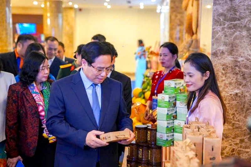 Prime Minister Pham Minh Chinh visits the exhibition showcasing standout products and OCOP items made by women.
