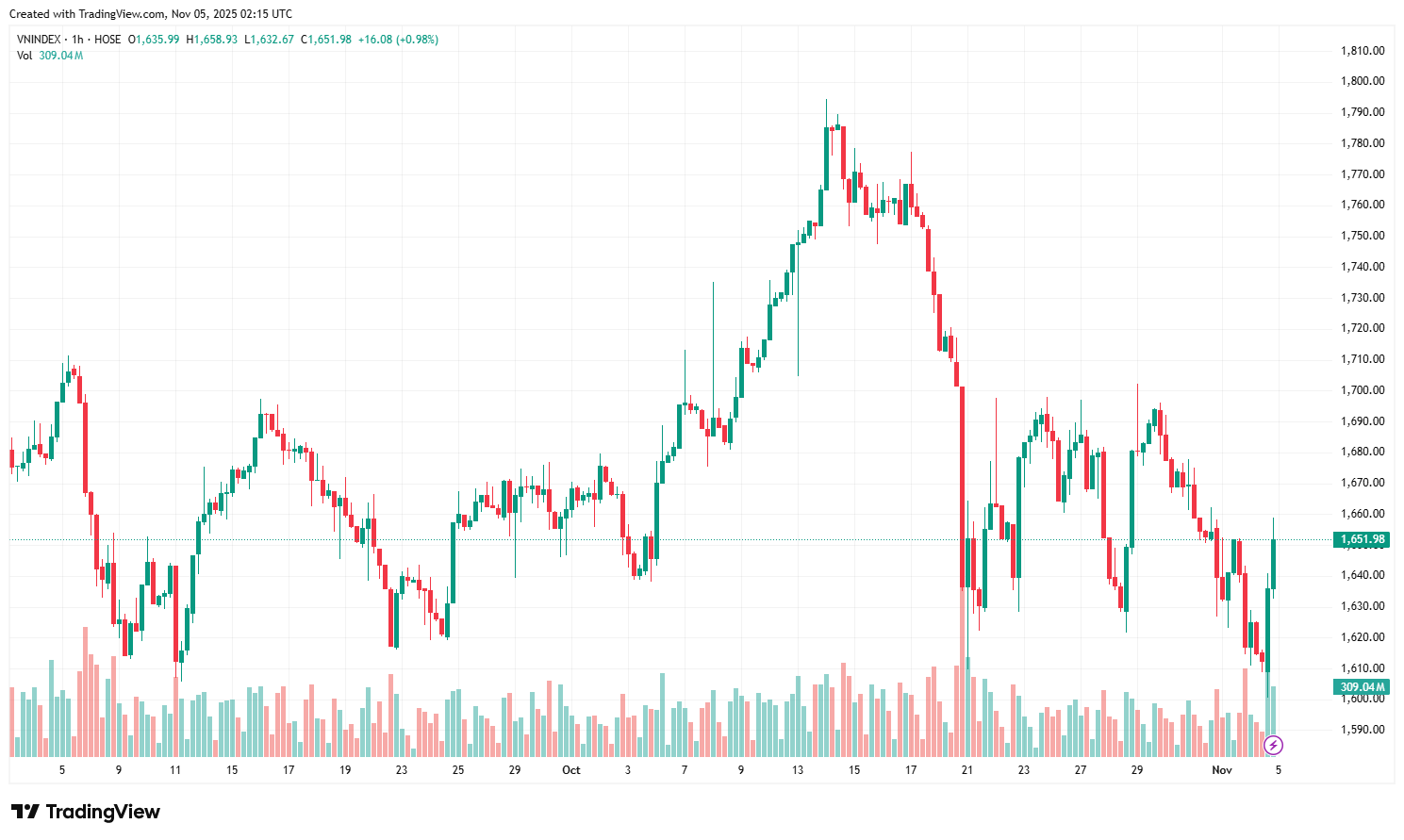 At the end of the session, the VN-Index closed at 1651.98, up 34.98 points, equivalent to 2.16%.